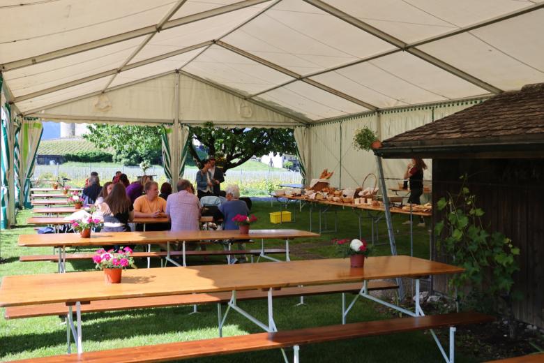 Un brunch bucolique au cœur de notre vignoble avec une vue magnifique sur le château d'Aigle. Au menu, buffet de petit-déjeuner suivi de plats chauds et desserts, le tout fait maison à base de produits bio de notre domaine et de producteurs locaux.  Réservation nécessaire par mail ou téléphone (078 657 90 77)