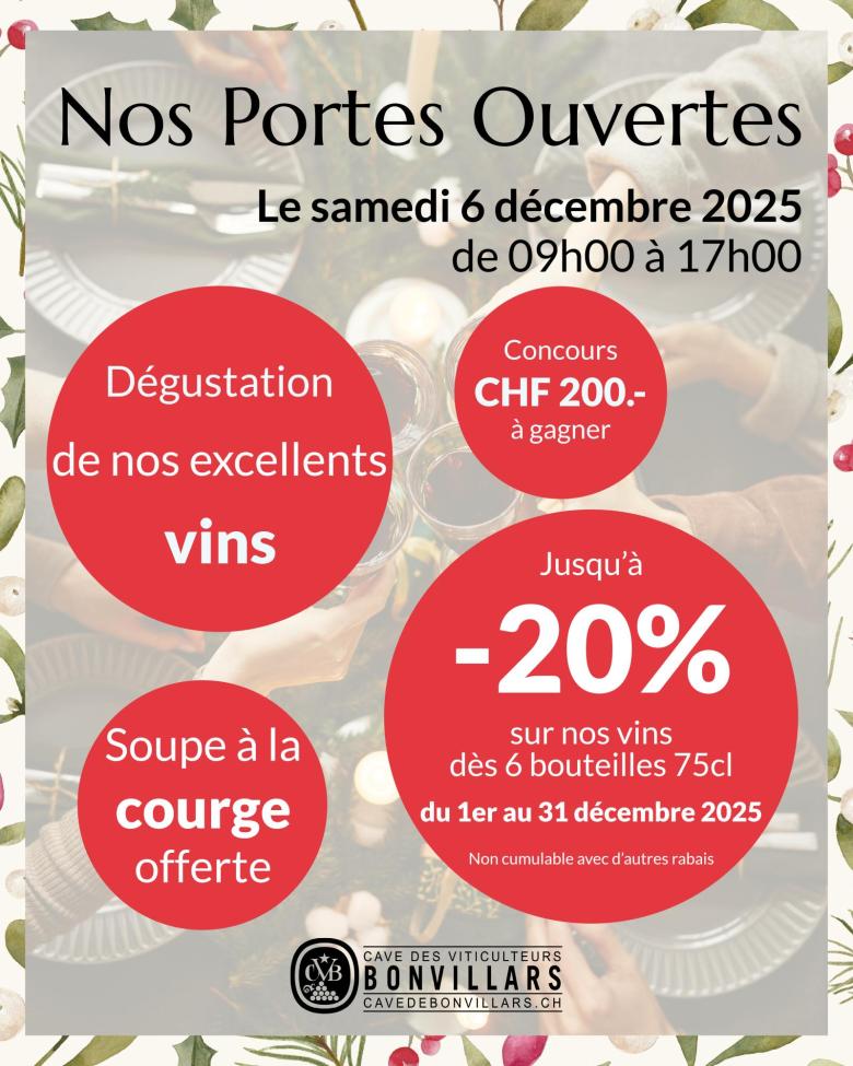 Jusqu'à -20% sur nos vins dès 6 bouteilles 75cl, du 1er au 31 décembre 2025