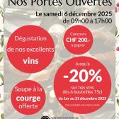 Events & Aktivitäten Dezember 2025 6 Dezember 2025 10h00 - 16h30 Marché gourmand et aux cadeaux Cave Dupuis Ch. de St-Pierre 3 1173 Féchy 6 Dezember 2025 10.00 -17.00 Uhr Offene Frühlingskeller der Union Vinicole Union Vinicole de Cully Rue de la Gare 10 1096 Cully 6 Dezember 2025 9:00 - 17:00 Uhr Tage der offenen Weinkeller Cave des Viticulteurs de Bonvillars Chemin de la Cave 1 1427 Bonvillars 6 Dezember 2025 De 9h00 à 14h00 Féérie de Noël au Château Château de Crans Rue Antoine Saladin 8 1299 Crans-près-Céligny 6 Dezember 2025 9:00 - 17:00 Uhr Tage der offenen Weinkeller Cave des Viticulteurs de Bonvillars Chemin de la Cave 1 1427 Bonvillars 6 Dezember 2025 Horaires Tous les premiers samedi du mois! 10h00 - 13h00 Dégustation 1er samedi du mois Cave Dupuis Chemin de St-Pierre 3 1173 Féchy 6 Dezember 2025 10h00-20h30 Cave Ouverte de l'Avent Cave Alain Emery Avenue du Cloître 22 1860 Aigle 6 Dezember 2025 Horaires: Tous les samedis : 10h. à 13h. Dégustation - "Apéro chez Coeytaux" Cave Jean-Daniel Coeytaux Rue du Château 4 1169 Yens 6 Dezember 2025 De 9h00 à 12h30 Dégustation à la CVB Cave des Viticulteurs de Bonvillars Chemin de la Cave 1 1427 Bonvillars 7 Dezember 2025 13h30-18h00 Cave Ouverte de l'Avent Cave Alain Emery Avenue du Cloître 22 1860 Aigle 7 Dezember 2025 Dès 11h00 Le Train du St-Nicolas Cave Alain Emery 10 Dezember — 14 Dezember 2025 www.lesentierdenoel.ch Le sentier de Noël Cave Dupuis Ch. de St-Pierre 3 1173 Féchy 11 Dezember — 13 Dezember 2025 Horaires : – Jeudi 11 décembre 2025, de 17h. à 21h. – Vendredi 12 décembre 2025, de 17h. à 21h. – Samedi 13 décembre 2025, de 10h. à 14h. Apéritif de fin d’année – Dégustation Cave Jean-Daniel Coeytaux Rue du Château 4 1169 Yens 11 Dezember — 13 Dezember 2025 Horaires : - Jeudi 11 décembre 2025, de 17h. à 21h. - Vendredi 12 décembre 2025, de 17h. à 21h. - Samedi 13 décembre 2025, de 10h. à 14h. «Caveau-Bar» à huîtres! Cave Jean-Daniel Coeytaux Rue du Château 4 1169 Yens 11 Dezember — 12 Dezember 2025 Du 6 novembre au 13 décembre 2025, les jeudis, vendredis et samedis dès 17.00 pour l'apéro et 18.30 pour le menu. Yourte en Lavaux - Huîtres Union Vinicole de Cully Rue de la Gare 10 1096 Cully 12 Dezember 2025 11h - 20h Apéro/Dégustation de Noël Domaine des Abbesses, Famille Perey Route des Abbesse 1026 Echandens 12 Dezember 2025 Le soir Le vin est-il divin ? Le Satyre Maison des Vins de la Côte 1185 Mont sur Rolle 12 Dezember 2025 Horaires : Vendredi 12 décembre 2025 : 17h. à 21h. Journée Mondiale du Chasselas! Cave Jean-Daniel Coeytaux Rue du Château 4 1169 Yens 13 Dezember 2025 9h30 à 13h Cave ouverte de l'Avent Domaine Bertholet Grand Rue 36 1844 Villeneuve VD 13 Dezember 2025 Du 6 novembre au 13 décembre 2025, les jeudis, vendredis et samedis dès 17.00 pour l'apéro et 18.30 pour le menu. Yourte en Lavaux - Fondue Vigneronne Union Vinicole de Cully Rue de la Gare 10 1096 Cully 13 Dezember 2025 Horaires: Samedi 13 décembre 2025: 10h. à 14h. Dégustation - "Apéro chez Coeytaux" Cave Jean-Daniel Coeytaux Rue du Château 4 1169 Yens 13 Dezember 2025 De 9h00 à 12h30 Dégustation à la CVB Cave des Viticulteurs de Bonvillars Chemin de la Cave 1 1427 Bonvillars 13 Dezember 2025 10h00-20h30 Cave Ouverte de l'Avent Cave Alain Emery Avenue du Cloître 22 1860 Aigle 13 Dezember 2025 De 8h à 10h, suivi d'un apéritif Mise aux enchères des vins de la Ville Ville de Lausanne - Clos des Moines Hôtel de Ville de Lausanne 1000 Lausanne 17 Dezember — 18 Dezember 2025 Livraisons les mercredi 17 et jeudi 18 décembre 2025 Livraisons gratuites «Tour de Suisse» avant les Fêtes Cave Jean-Daniel Coeytaux Rue du Château 4 1169 Yens 20 Dezember 2025 Horaires: Tous les samedis : 10h. à 13h. Dégustation - "Apéro chez Coeytaux" Cave Jean-Daniel Coeytaux Rue du Château 4 1169 Yens 27 Dezember 2025 Horaires: Tous les samedis : 10h. à 13h. Dégustation - "Apéro chez Coeytaux" Cave Jean-Daniel Coeytaux Rue du Château 4 1169 Yens 29 Dezember — 30 Dezember 2025 Salon Bio Vino 1510 Moudon Januar 2026 4 Januar 2026 16h30 Concert des Rois Mages Cave Alain Emery 9 Januar — 18 Januar 2026 Vendredi soir Samedi midi et soir Dimanche midi sur réservation Fondue dans le pain à la Terrasse dans les vignes Domaine Bertholet Chemin des Pierrettes 9 1844 Villeneuve Februar 2026 7 Februar 2026 Tous les samedis de 10h à 13h Dégustation - "Apéro chez Coeytaux" Cave Jean-Daniel Coeytaux Rue du Château 4 1169 Yens 14 Februar 2026 Tous les samedis de 10h à 13h Dégustation - "Apéro chez Coeytaux" Cave Jean-Daniel Coeytaux Rue du Château 4 1169 Yens 21 Februar 2026 Tous les samedis de 10h à 13h Dégustation - "Apéro chez Coeytaux" Cave Jean-Daniel Coeytaux Rue du Château 4 1169 Yens 28 Februar 2026 Tous les samedis de 10h à 13h Dégustation - "Apéro chez Coeytaux" Cave Jean-Daniel Coeytaux Rue du Château 4 1169 Yens März 2026 7 März 2026 Tous les samedis de 10h à 13h Dégustation - "Apéro chez Coeytaux" Cave Jean-Daniel Coeytaux Rue du Château 4 1169 Yens 14 März 2026 Tous les samedis de 10h à 13h Dégustation - "Apéro chez Coeytaux" Cave Jean-Daniel Coeytaux Rue du Château 4 1169 Yens 21 März 2026 Tous les samedis de 10h à 13h Dégustation - "Apéro chez Coeytaux" Cave Jean-Daniel Coeytaux Rue du Château 4 1169 Yens 28 März 2026 Tous les samedis de 10h à 13h Dégustation - "Apéro chez Coeytaux" Cave Jean-Daniel Coeytaux Rue du Château 4 1169 Yens April 2026 1 April — 31 Mai 2026 Horaires : Du 1er avril au 31 mai 2026 : Tous les samedis de 10h. à 13h. Exposition de peintures – Claudine Perey Cave Jean-Daniel Coeytaux Rue du Château 4 1169 Yens 4 April 2026 Tous les samedis de 10h à 13h Dégustation - "Apéro chez Coeytaux" Cave Jean-Daniel Coeytaux Rue du Château 4 1169 Yens 9 April — 12 April 2026 Samedi et dimanche à midi, sur réservation Jeudi en soirée, sur réservation Bar à Raclettes à gogo à la Terrasse dans les Vignes Domaine